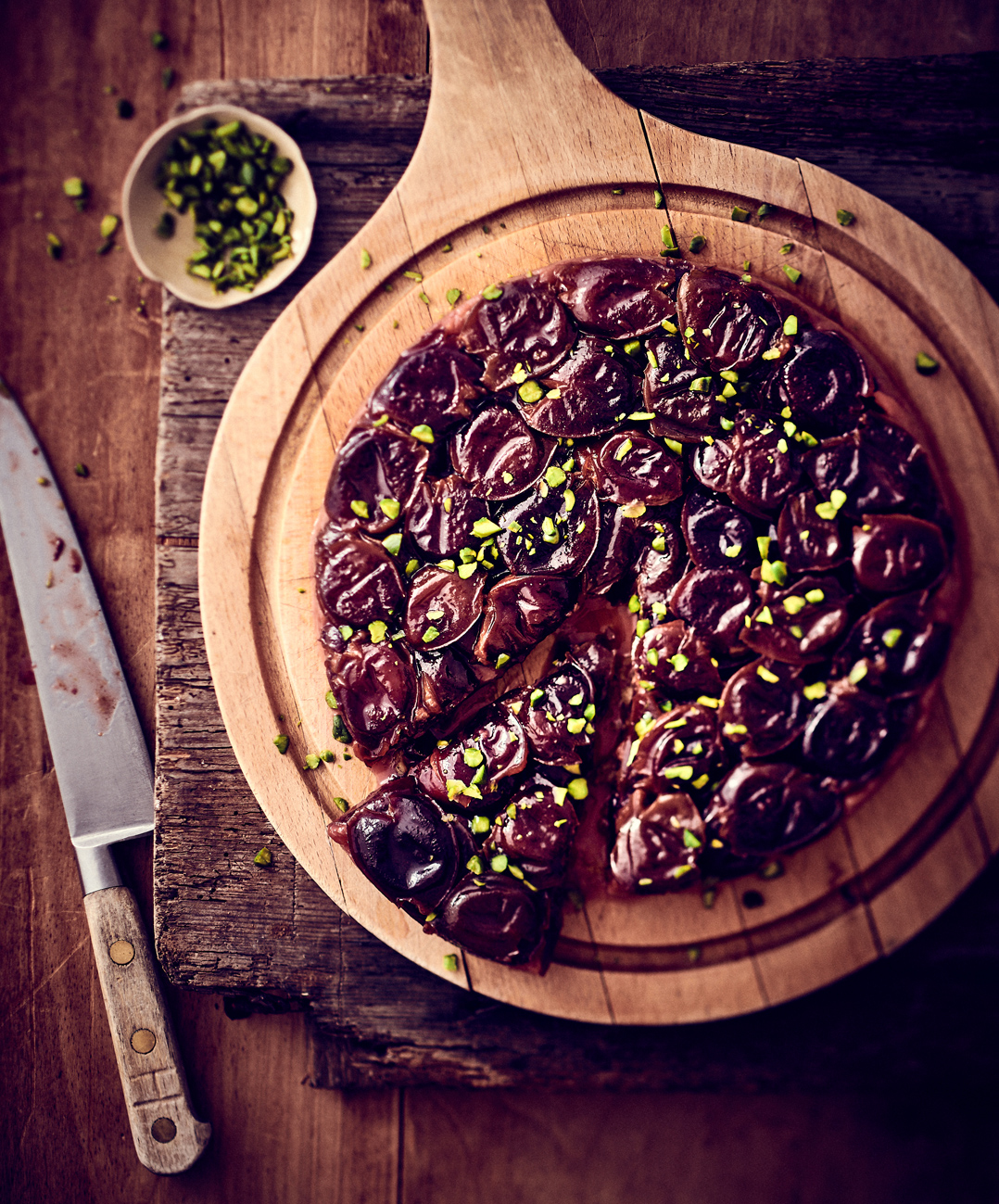 Image précédente Image suivante Tartes de notre enfance . Tarte Renversee Prunes Rouges Pistaches Tarte renversée aux Prunes Rouges et Pistaches